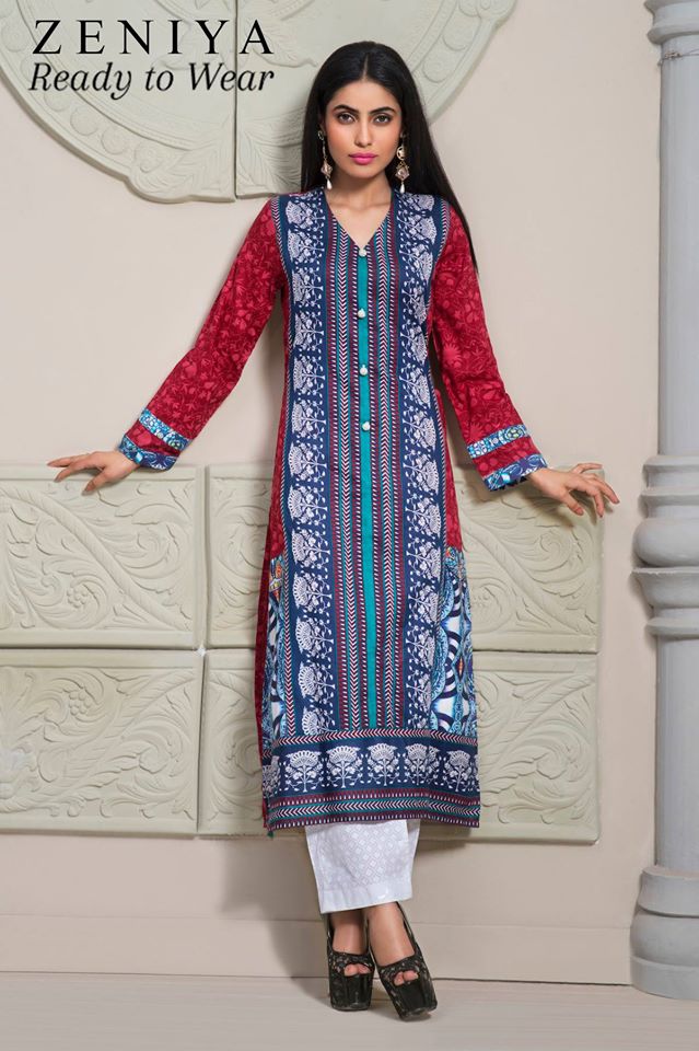 Like always, this year once again Zeniya lawn dresses are breaking the sunshine & mixing in elegance and glamour to make more versatile range for the fashion lover ladies and young girls. This year Zeniya came as an absolute stunner with bright, exotic cuts and graceful styles to make your look chic and sophisticated. This latest collection consists of ready to wear dresses, mostly short or normal length shirts paired with pant trousers. The prints are dramatic and utterly breathtaking that will not only polish your femininity but will also award you the smartness and I think that’s all what modern women needs. The color combinations are very fresh and decent, bright as well according to summer taste. Ethnic patches to vintage motifs with intricate embroideries, these all are the main features of these dresses. Furthermore, have a look at yourself, it will amaze your eyes. Have a look on the image gallery posted below and get inspired  by the latest designs. Go stock your wardrobes with this amazing collection by Pakistan’s Popular designer!